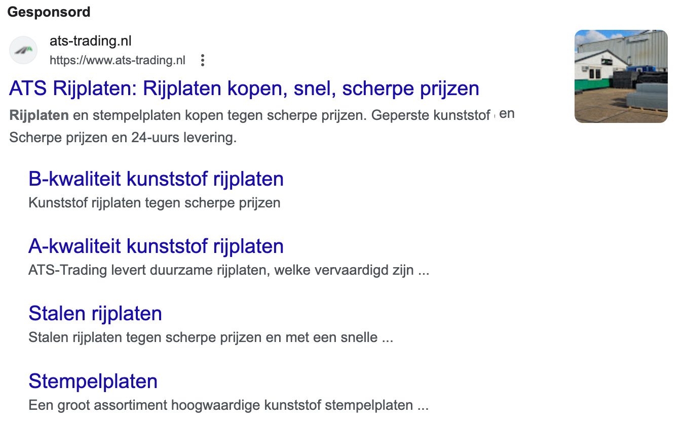 Door zelf een advertentie samen te stellen is het bijvoorbeeld mogelijk om uw belangrijkste producten of diensten direct uit te lichten, uw telefoonnummer te tonen, uw unieke selling points te promoten en om direct een contactformulier te plaatsen bij de advertentie. Daarnaast kunt u zelf bepalen op welke pagina de klant terecht komt wanneer er op de advertentie wordt geklikt. Hierdoor zorgt u ervoor dat uw klanten veel gemakkelijker de informatie vinden die ze nodig hebben.