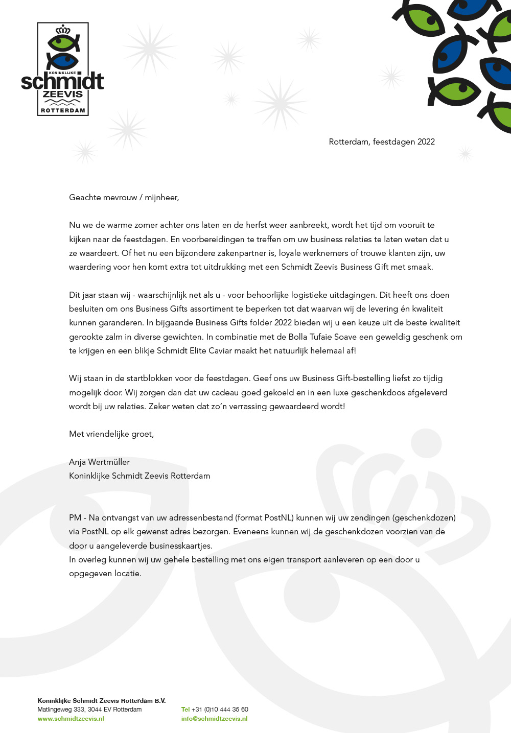 Met trots mogen we zeggen dat we het account van Schmidt Zeevis hebben overgenomen. Na een overdrachtsperiode realiseren we nu alle uiting voor Schmidt Zeevis. Denk hierbij aan brochures en flyers, beletteringen en narrowcasting systemen in de winkel. Maar ook verpakkingen, stickers, etiketten, dozen en eigenlijk zo'n beetje alles waar het Schmidt Zeevis logo op staat. Natuurlijk gebruiken we daarbij de bestaande herkenbare Schmidt Zeevis huisstijl. Waar nodig en gewenst zullen we deze stijl verder uitwerken.